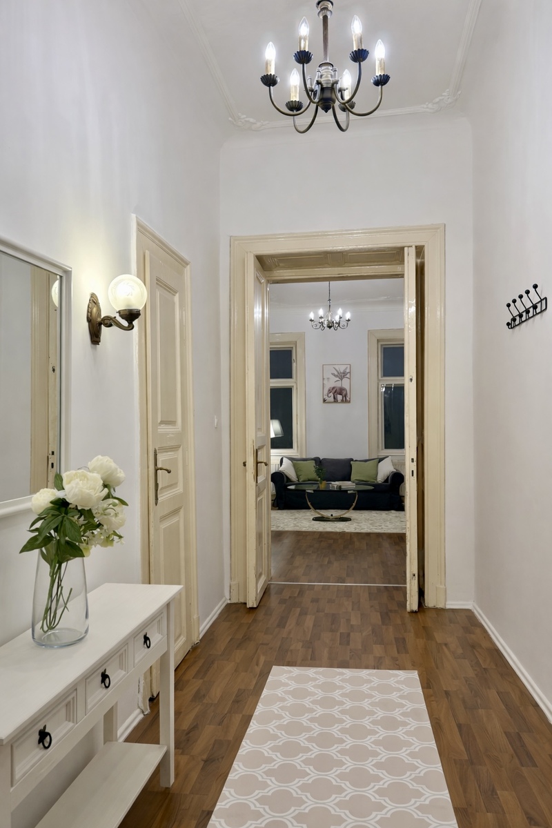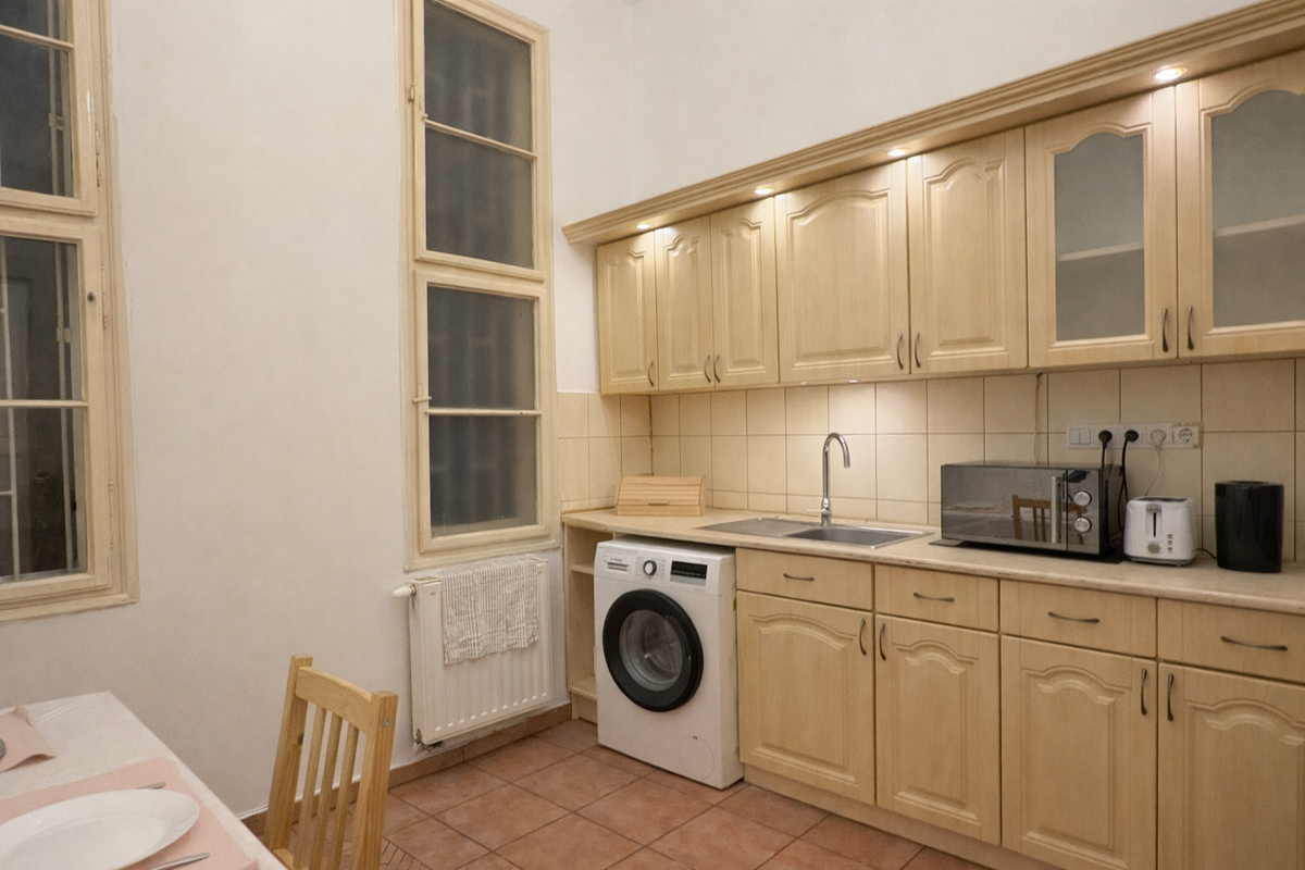 Second floor spacious, 2 bedroom and separate living room / working area, separate kitchen fully renovated and bright apartment a stones throw from the Oktogon and Andrassy út. Very central apartment for all business and transport. The apartment is fully equipped and is ideal for a professional or a young couple or students sharing , looking for a place for longer term. Although central the street and the building are quiet. Oktogon and the Andrassy út with the underground and tram stops makes the apartment easily approachable at any time of the day and night. For eating out Liszt Ferenc ter is highly recommended with its numerous cafes/bars and restaurants. Within close walking distance of Liszt Ferenc Square (close to Oktogon) - with many trendy restaurants, bars, cafes and shops. Within 5 minutes walking distance to Oktogon tram and metro station and only 3 minutes to Nyugati train/tram and metro station.